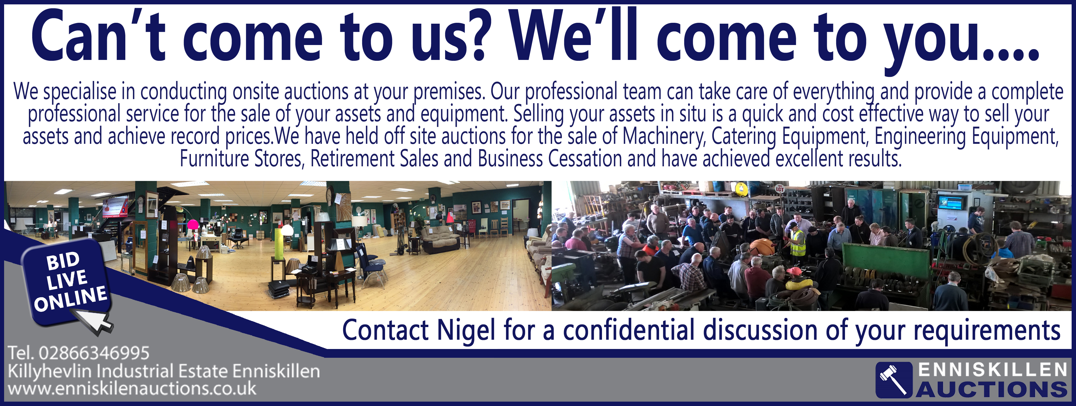 Enniskillen Auctions provides the complete auction solution for the selling and buying of plant, machinery, vehicles, tools, catering equipment and gym equipment. The company also provides an all in one solution for companies or individuals requiring asset clearances or liquidations of any type and nature which can be conducted on their premises if required.
